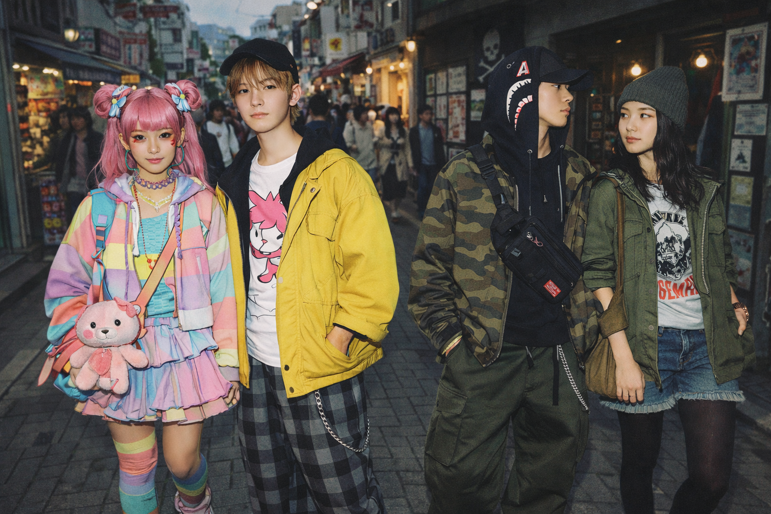 Harajuku is both a real Tokyo area and a global shorthand for Japanese street fashion—where youth culture, shopping, and style experimentation overlap.